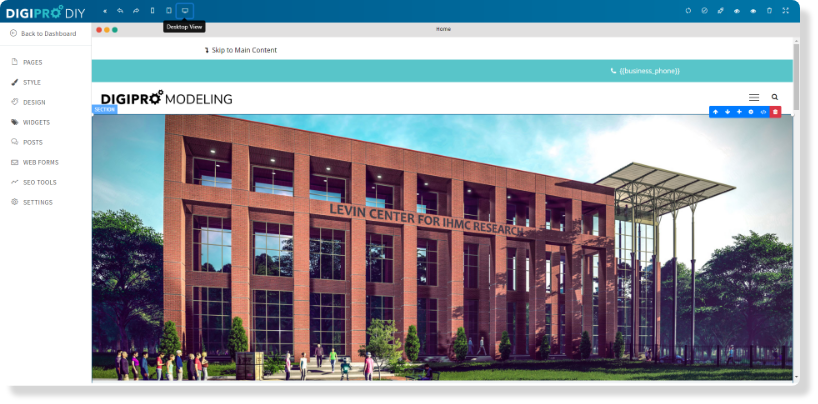 This feature allows you to view your website how it would appear on a standard Desktop screen. (Note: some desktop resolutions may vary.)