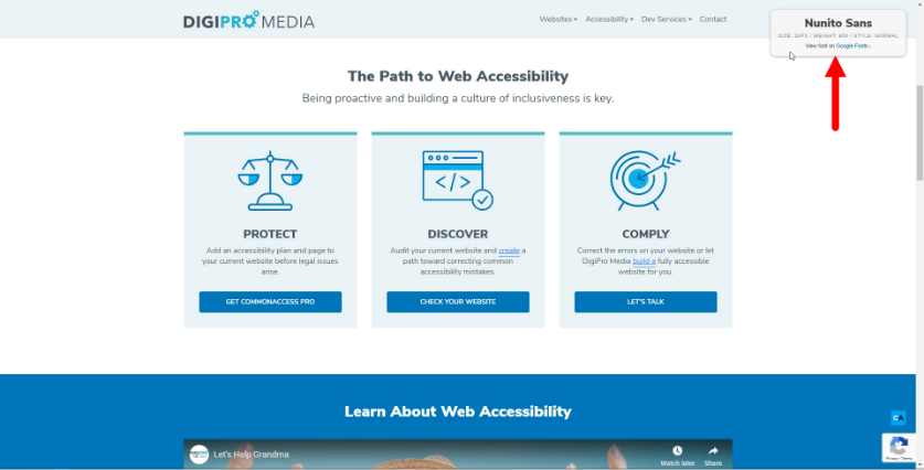1. Visit the website you wish to find the font style. In the example below we visited the DigiPro Media Website