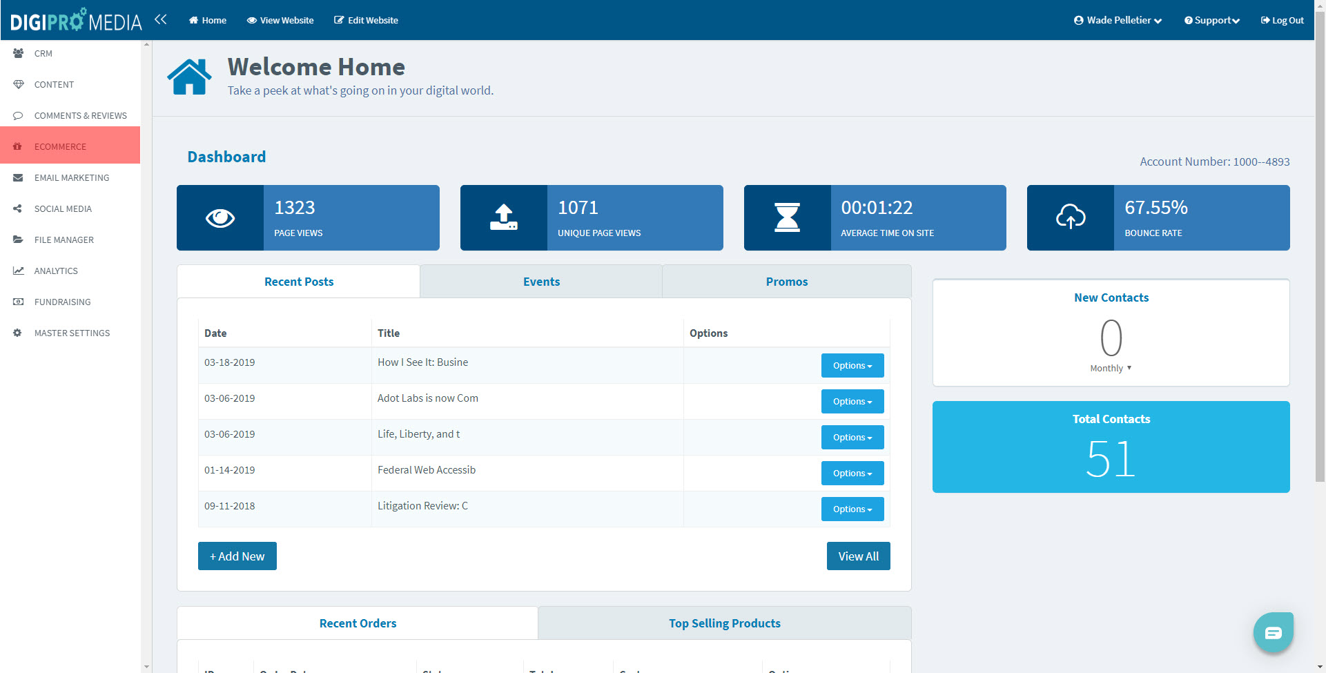1. First, on the “Welcome Home” screen, select the “ECOMMERCE” module located to the left-hand side of your screen in the sidebar menu.