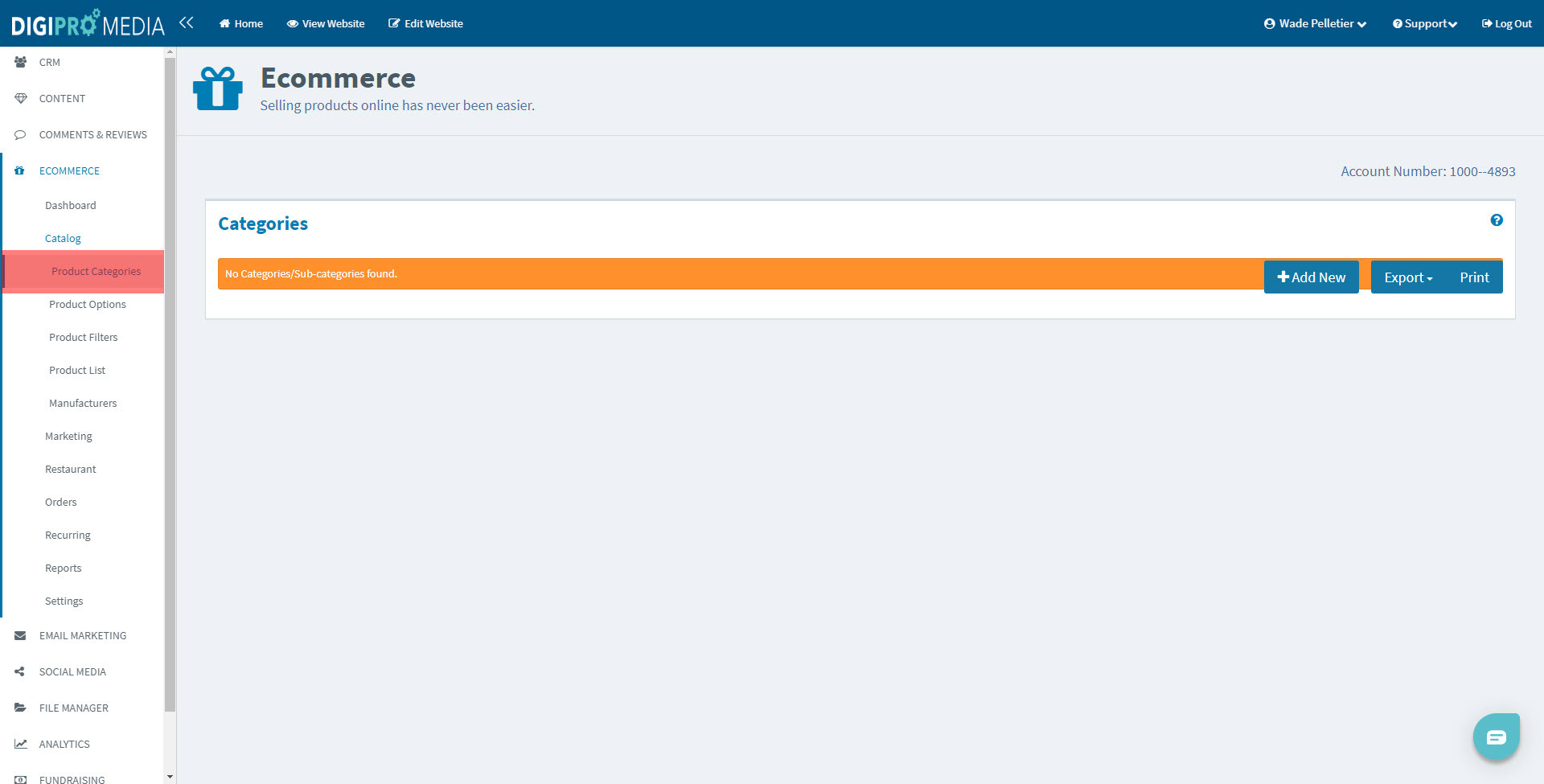 To add a new product category, select the blue “Add New” button located towards the top right-hand side of your categories window.