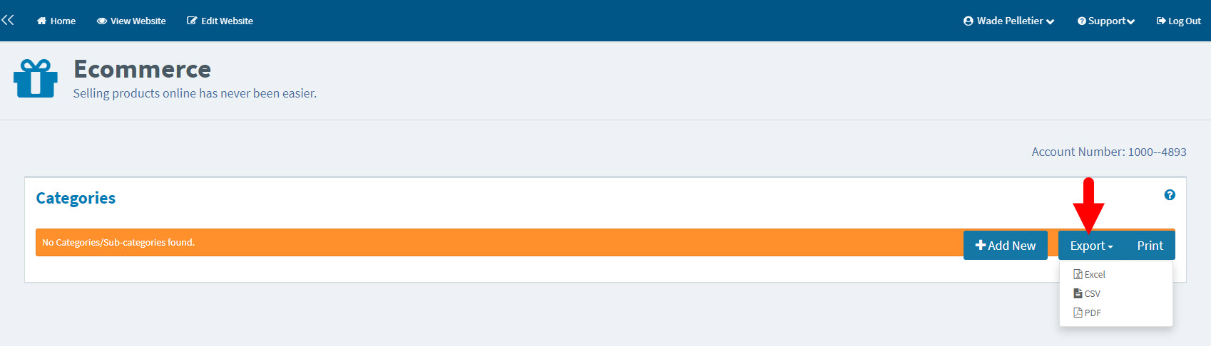 1. When on your Product Category screen, select the blue "Export" button located towards the top right-hand side of your screen next to the print button.