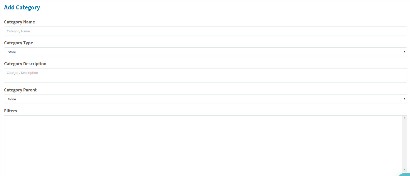• Category Type: Category will either be "Store" or "Restaurant Menu". If you are adding a product you will need to select "Store" as the category type. The "Restaurant Menu" category type is only used when building a food menu.